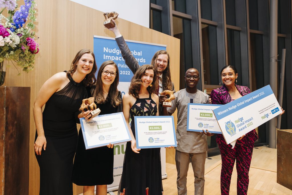 During the Awards night on 27 May 2022 the Nudge Global Impact Awards 2022 were handed out to participants from the Nudge Global Impact Challenge 2021 as a recognition for the direct impact they realise with their projects.
